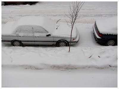 the snow doesn't look that bad, but it's still coming down. and my car is parked on The Hill of Most Precarious Precariousness.